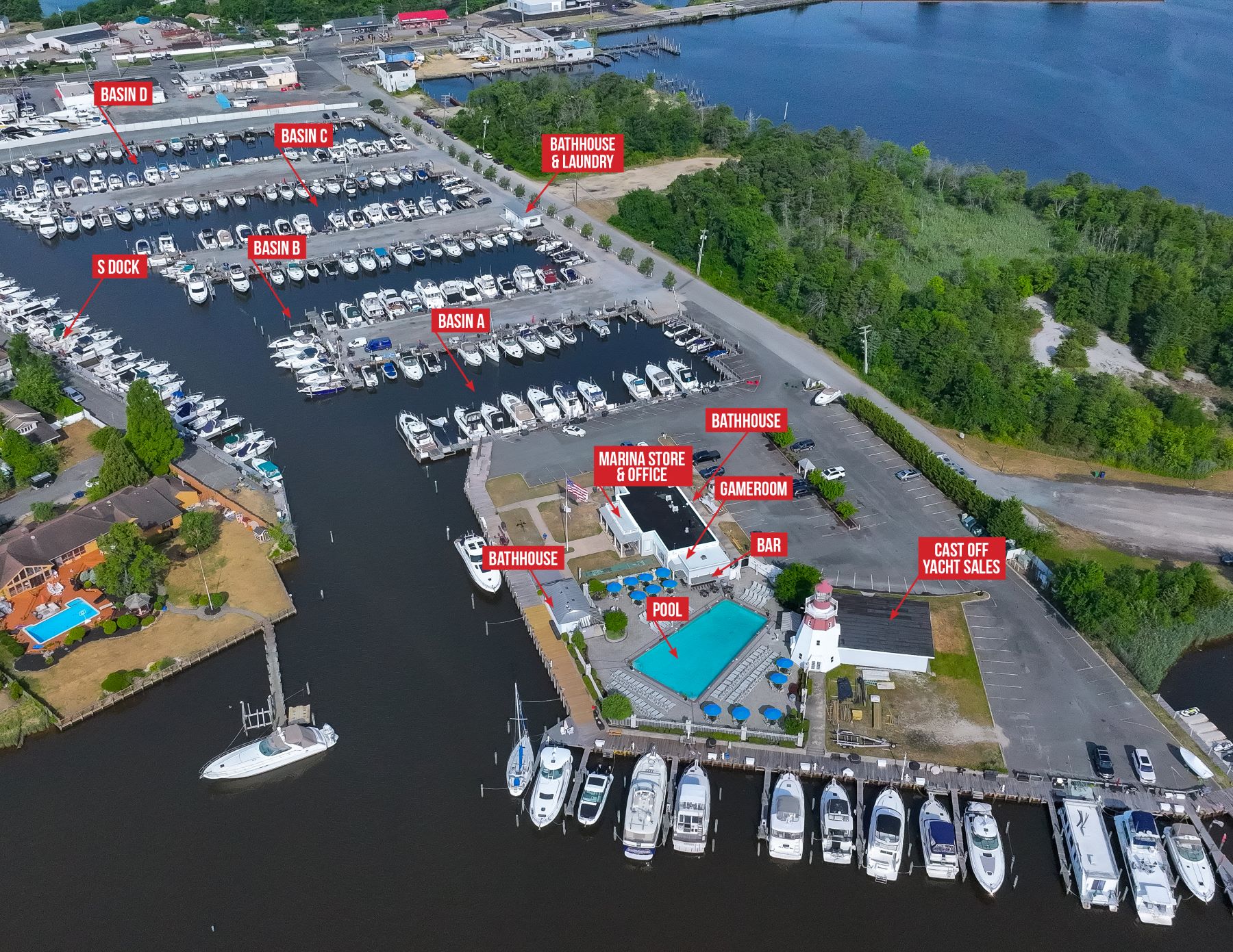 Lighthouse Point Marina and Yacht Club is New Jersey’s most distinctive and welcoming full-service marina. Nestled in a secluded, prime location along the picturesque Toms River in Ocean County, we provide direct water access to the expansive and well-protected Barnegat Bay. Our marina basins are extremely calm and protected with no wakes. Additionally, our location allows ocean access via the Manasquan or Barnegat inlets.